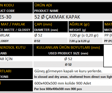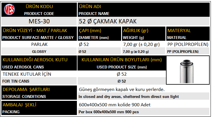Kapak Ø52 MES-30 ÇAKMAK KAPAK
