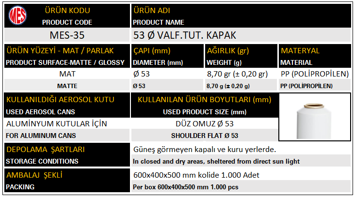 Kapak Ø53 MES-35 53 çap valf.tut.kapak