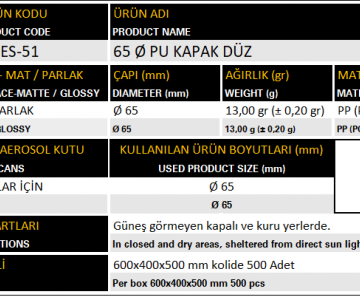 Kapak Ø65 MES-51 65 çap pu kapak