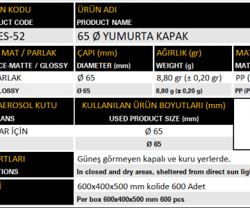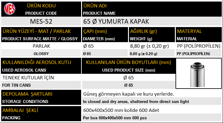 Kapak Ø65 MES-52 65 Çap Yumurta Kapak